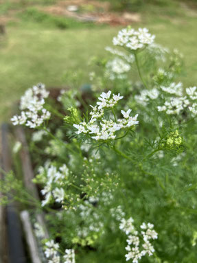 料理でお馴染みのパクチーの花です。